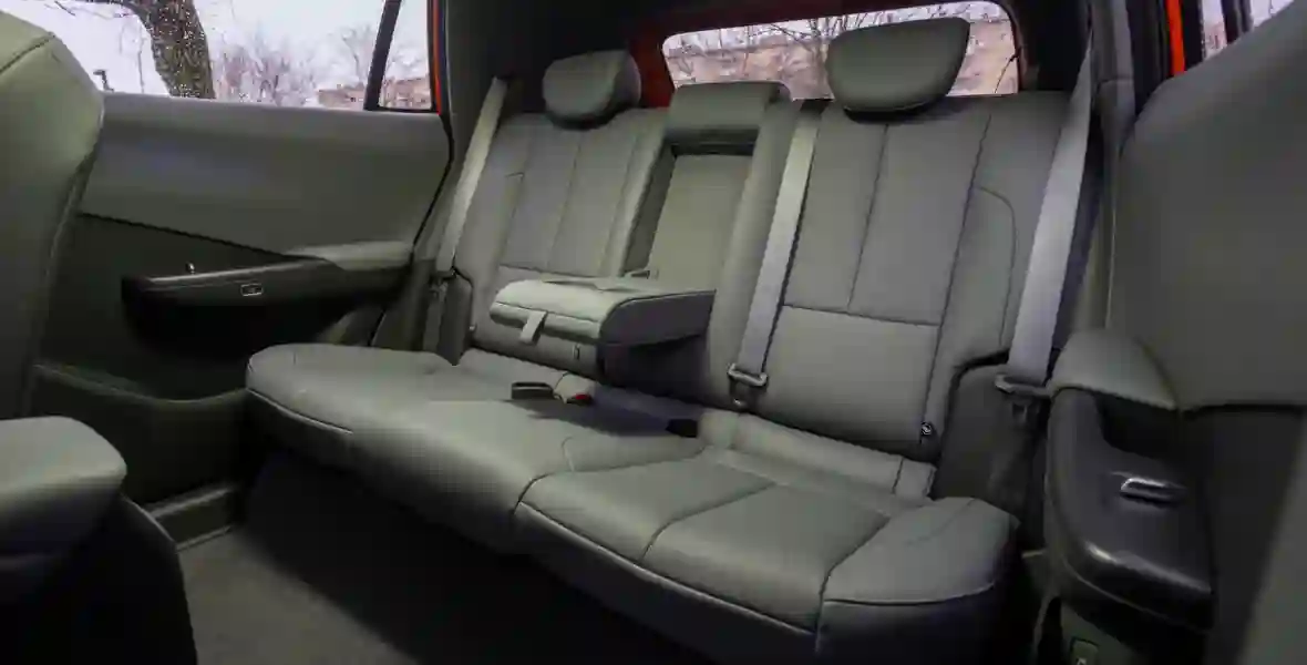 Ну а задний диван радует внезапным простором даже с учётом высокого уровня пола — тоннеля нет, запас для коленей приличный, потолок высоко. Подогревов и отдельного климата тут нет — не по статусу.
