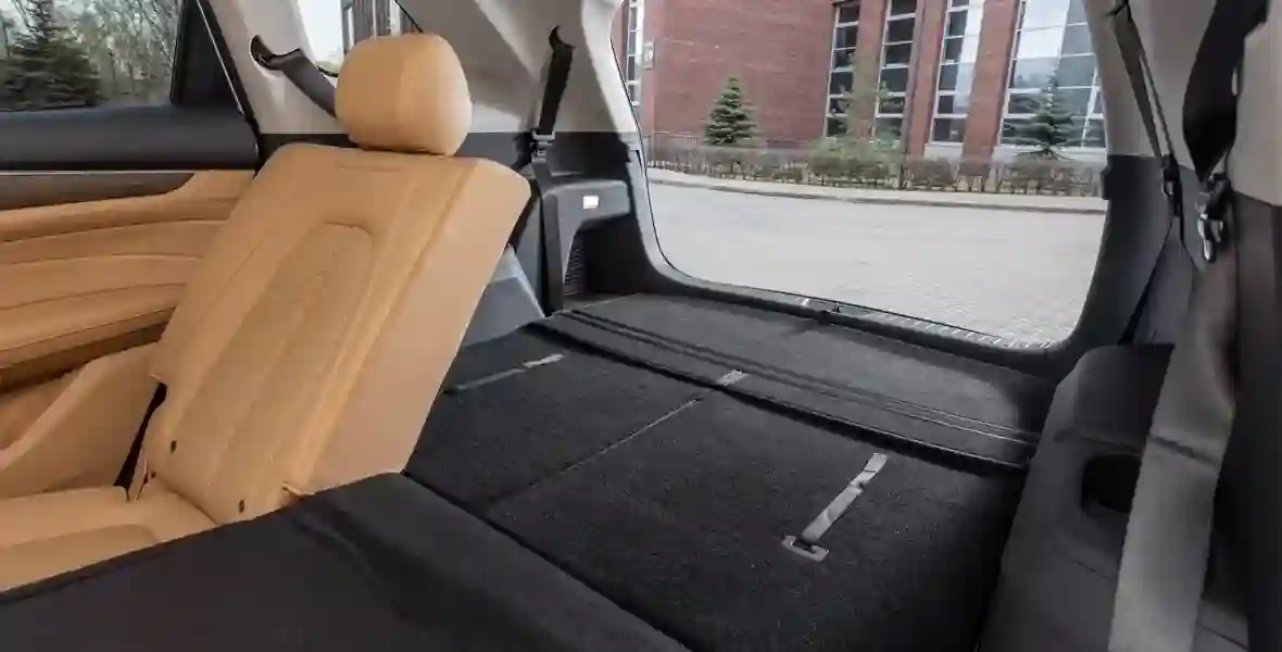Но если сиденья третьего ряда сложить в пол, то образуется огромный багажник объемом 934 л. И это еще не все. Сложенные спинки второго ряда увеличивают объем багажного отделения до 2150 л; да что там – при желании здесь можно с комфортом переночевать. Но, к сожалению, места даже для «докатки» не нашлось, в нише – баллончик с герметиком и набор инструментов.